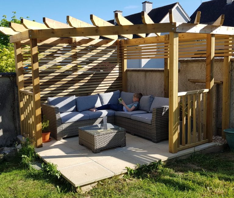 On this project we designed and built a bespoke treated timber gazebo in the corner of a garden.